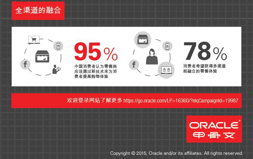 甲骨文于2015年1月委托Redshift Research公司进行了本次消费者调研报告。本次全球性《零售无界–洞察现代商业零售业》调研报告的结果来自10个国家、5,000名在线消费者固定样本的调研反馈,调研结果于2015年3月正式发布。