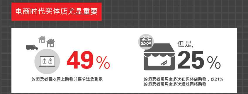 中国消费者更愿意在网上购物,但仍然重视实体店:49%的受访者更倾向于网上购物,但去实体店的频率仍然多于上网购物的次数;69%的受访者表示如果店员能够使用移动技术来帮助查询商品的库存,产品细节或提供其他相关信息,他们更乐于购买;52%的受访者表示如果体验到优质的店内服务,他们的购买忠诚度会增加。