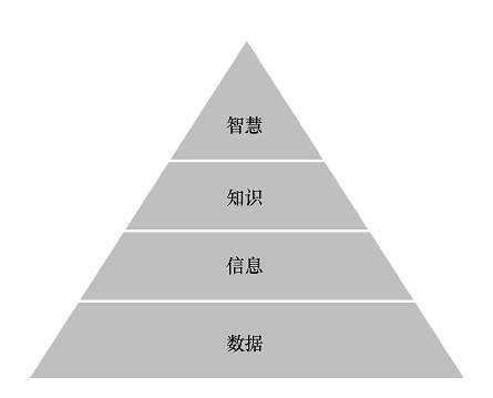 互联网企业的出现,成为了一个IT产业的异类,一家家什么都不生产却又市值奇高的公司,当然是泡沫。只是互联网企业经历一个个大起大落后,越发青春焕发,甚至都开始秀健硕的肱二头肌,开始讲颠覆了。背后的原因是什么?互联网企业正因为没有实体生产,经历的过程正好契合了DIKW的知识金字塔,如图2所示。要知道人类历史的推进就是知识的累积和进化,近100年人类社会的高速发展,也是知识的超常规累积的结果。
