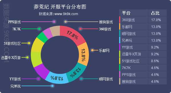 点评:乐都网独代的《莽荒纪》本周表现良好,开服总数增长18.1%,其在360游戏的开服频率增长较为明显,本周开服占比增加2%。