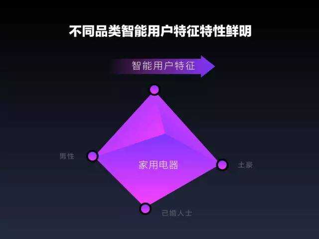 对于家用电器类智能产品用户来说,他们的特性分别以“男性”、“已婚”“土豪”为主。
