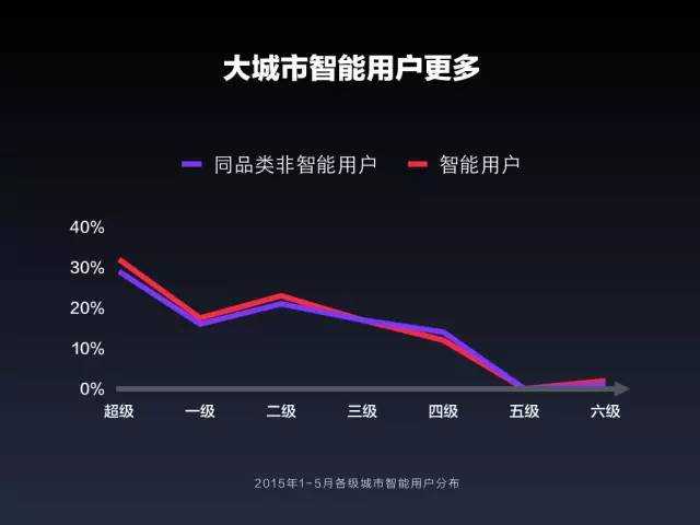 智能用户随着城市等级的划分,客单价呈现递减的趋势。大致的规律是,城市越小,客单价越高。