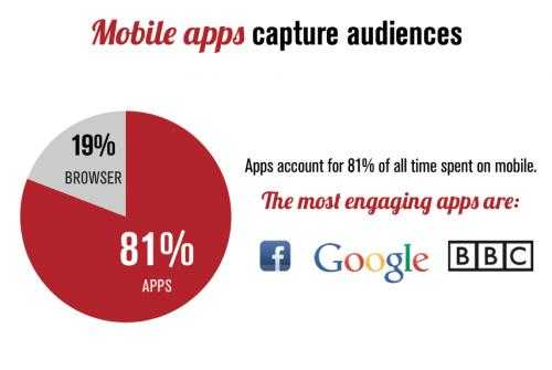 comScore:移动占互联网时间的56% 超过PC 199IT原创编译 comScore移动受众行为信息图显示用户是如何利用智能手机和平板的。 调查显示移动占互联网时间的56%,PC占44%。大部分移动时间消耗在使用应用上,占81%。Google(91%)、 Facebook(86%)和BBC(77%)领先。 事实上,社交媒体只占移动时间的31%,但是比娱乐(14%)和游戏(14%)都高。 编译自:WeAreSocial 译者:孙莹 更多阅读:WeAreSocial:2015年8月中国互联网、社交、移动和电子商务最新数据WeAreSocial:2015年亚太地区数字、社交、移动调查报告 ComScore:2014年美国互联网趋势聚焦comScore: 移动先行世界的社交媒体营利ComScore:调查显示PC、平板电脑和智能手机在本地搜索扮演的不同角色comScore:2018年聚焦全球网络未来报告comScore:2020年第一季度杂货移动支出增长148%comScore: 面向多平台多数派用户行销comScore:2012年美国数字生态趋势报告internet2go:移动已经占数字内容消费1/3的天下Wearesocial:全球一半的人拥有一个移动手机comScore:2013年 Q1美国消费者通过PC在线购物花费502亿美元 移动设备购物花费59亿美元WeAreSocial:互联网、社交、移动最新统计 全球网民已超过70亿GSMA:2018年全球移动趋势报告comScore:2012年11月美国移动市场份额 三星占26.9%