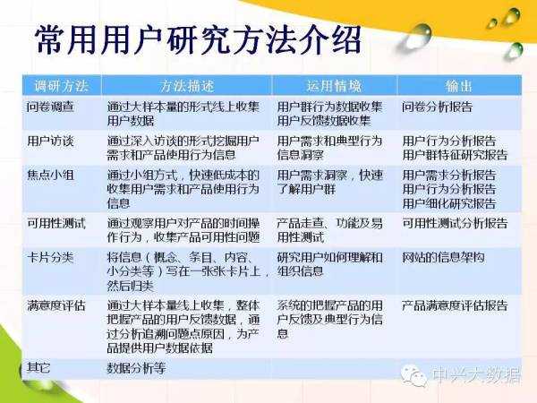 PPT:用户体验之用户研究方法 更多阅读:如何选择用户体验研究方法用户研究方法的选择及使用时机两大市场研究方法之感悟分析游戏用户研究方法种类及其优劣(2)Econsultancy:导航和屏幕问题制约移动网站体验Econsultancy:新闻网站11个伤害用户感情的广告热点图告诉你用户的注意力都在哪??尼尔森:2011年美国及全球用户电视,网络和手机媒体使用报告ComScore:2013年美国假期购物季桌面计算机用户网络购物支出同比增长10%拉近用户体验的距离图解:2015年用户体验行业调查报告Temkin:用户满意是一切360智库:2016年用户婴幼儿奶粉消费地图报告用户调研数据是如何欺骗我们的那么用户到底想要怎么样的产品?
