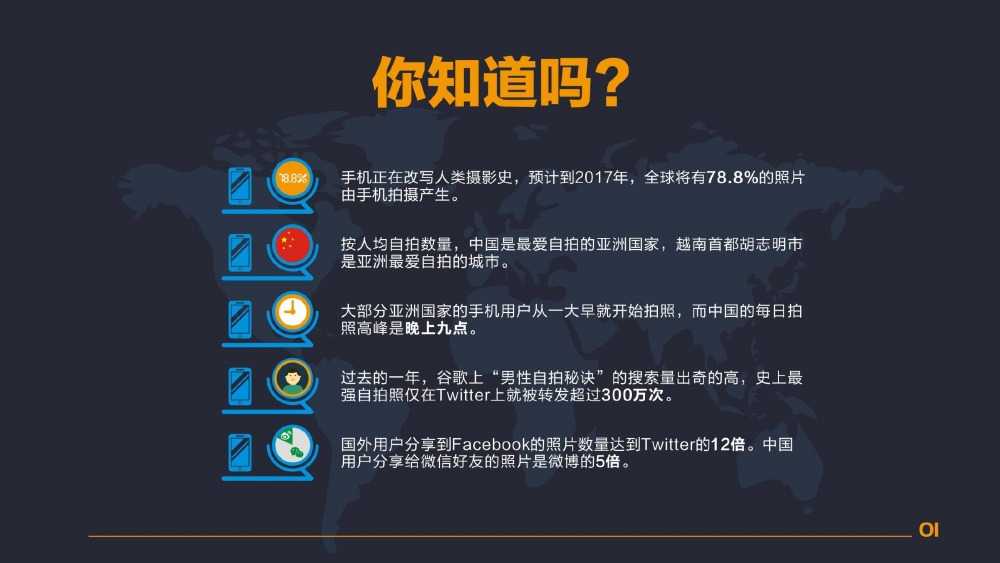 延续2014年的热度,“自拍”这件大事在2015年持续发酵。谷歌收录的自拍相关搜索在2014年增长了8倍。据相机360的报告显示,无论性别、国度、和文化,自拍是手机拍摄最多的内容。报告里有个有趣的发现,列举了全亚洲最爱自拍的10个国家与城市。中国名列榜首,成为全亚洲最爱自拍的国家。意外的是越南首都胡志明市是全亚洲最爱自拍的城市。