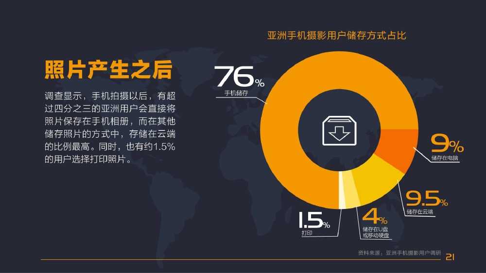 据相机360报告显示约有8.5%的亚洲海外用户将照片储存在云端,中国有13%的用户会上传云端。云端储存以更节约成本的方式对照片进行更加完善与严密的保护,毫无疑问云端储存会成为将来的大趋势。
