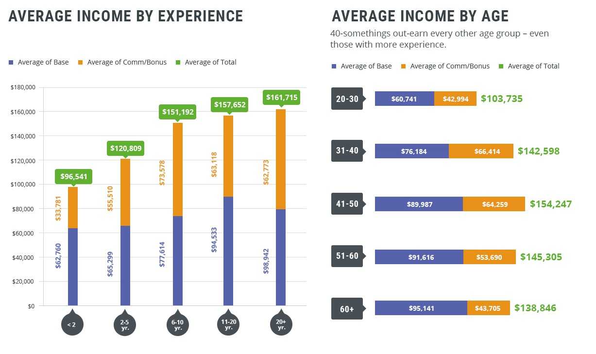 人们可能会想当然的认为,最有经验的医药代表年收入最高,年龄越大的医药代表经验越丰富从而赚的越多,事实上并不总是如此。2015年报告显示,40-50年龄组的平均收入最高,为15.4247万美元;尽管从业经验大于20年的代表们平均收入最高(16.1715万美元),但当经验相当时,40-50年龄组的平均收入仍然高于51-60年龄组及60+年龄组。相比经验,年龄似乎对收入的影响更大。