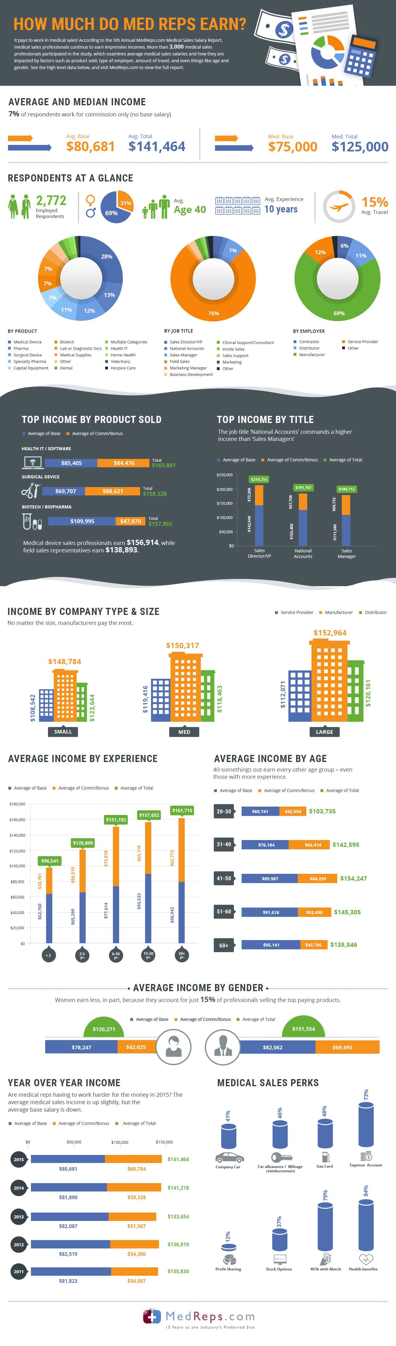 美国专业网站MedReps.com发布了2015年美国医疗行业销售人员收入年度报告。数据显示,尽管医药行业目前正经历动荡,但该行业销售人员的收入未受明显影响,2015年平均基本工资为8.0681万美元,平均年收入为14.1464万美元,与2014年持平(分别为8.129万和14.1218万美元)。