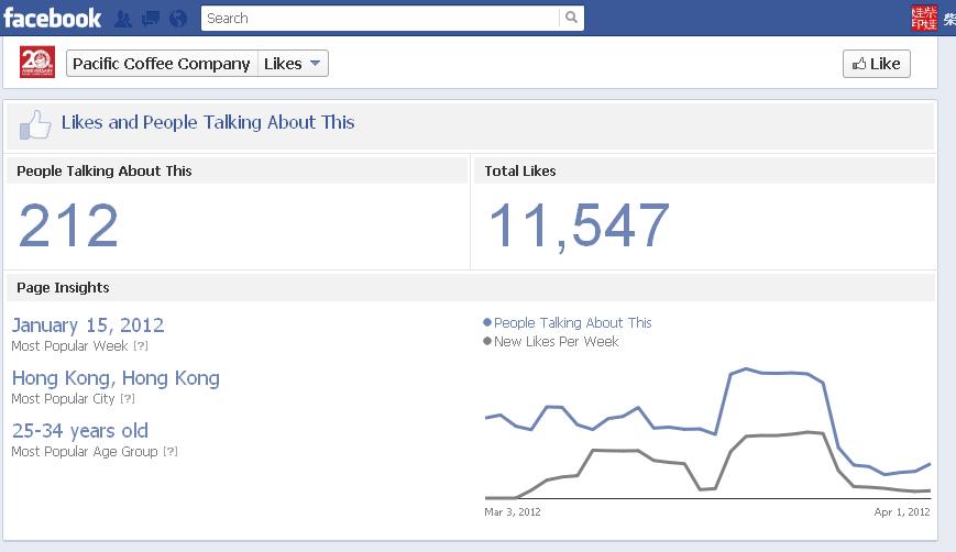 Pacific Coffee的粉丝页数据