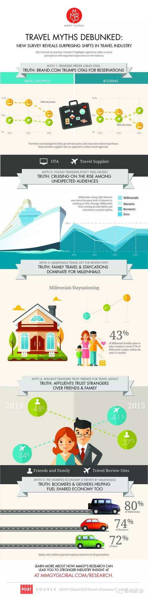 领先的旅游和酒店整合营销机构MMGY近日发布《2015年美国旅行者的行为习惯》(2015 Portrait of American Travelers,即POAT),揭示美国人新兴旅游习惯和意向方面的变化,对行业营销人员一些沿用的流行做法做出质疑。该调查结果同样对行业营销产品的方式、消费者回应的方式等意义深远。