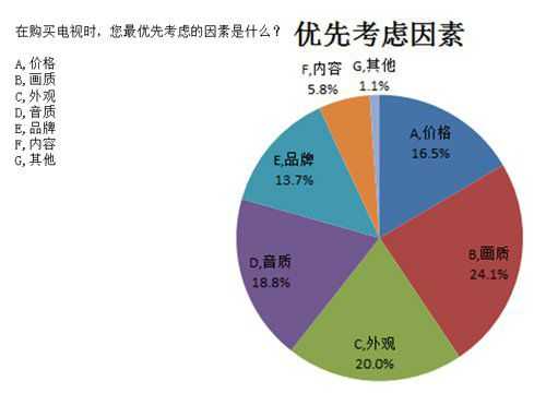 另外,据《百姓家电2015电视产品消费关注调查》数据显示,消费者最关心是电视的画质24.1%,其次是外观 20%,音质18.8%,价格16.5%等,在丰富的互联网资源条件下,智能电视包含的内容资源以及其他因素影响比较小。