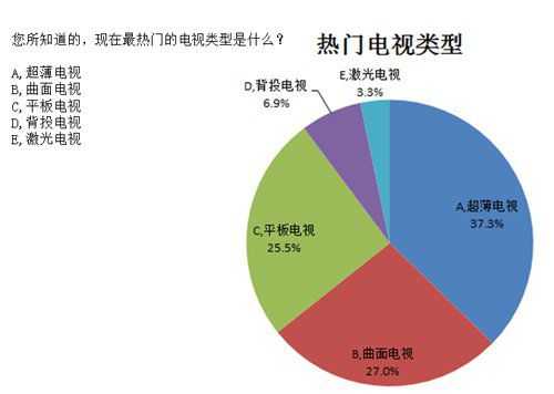 据奥维咨询数据显示,1-5月彩电市场55寸的零售量占比达11%,同比增长3个百分点,增长幅度最大。据《百姓家电2015电视产品消费关注调查》数据显示,目前市场上超薄电视拥以10个百分点的的优势,37.3%的购买占比,成为最热门的电视类型,曲面电视紧随其后,同样也受到市场的青睐。