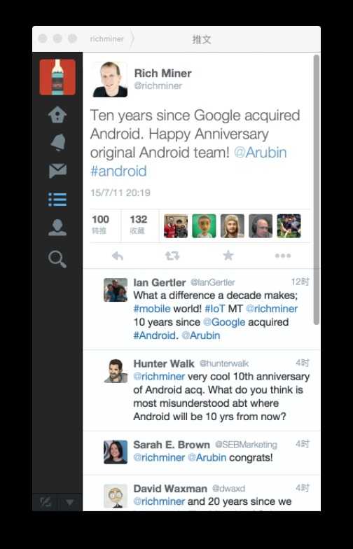 北京时间昨天晚上 8 点多,和安迪·鲁宾一起开发 Android 的搭档、现在的 Google Ventures 合伙人 Rich Miner 发了一条推文说: