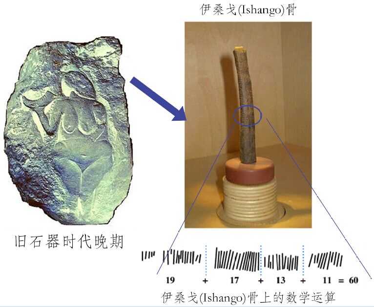 旧石器时代的部落成员(特别是首领),通常会在树棍或者动物骨头上刻下凹槽,用以记录日常的交易活动或物品供应。通过比较树棍或骨头上凹痕的多少与变化,来进行基本的数据运算,从而可使部落首领够对一些事情进行预测,如山洞里食物还可维持几天,何时再去打几只野兔等。