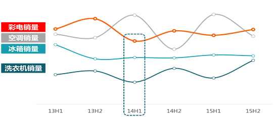 从整个家电行业来看,自14年开始以彩电为首的家电行业进入规模稳定,低速增长的结构调整期,彩电成为家电行业发展的晴雨表,未来三年家电行业的竞争焦点将转向存量市场。