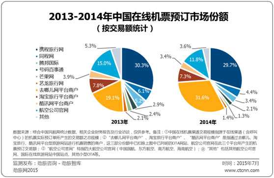劲旅咨询分析认为,2015年,中国在线机票市场呈现如下特点: