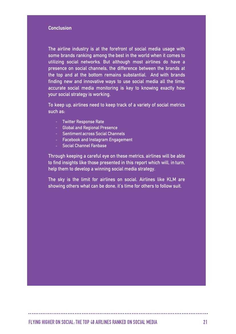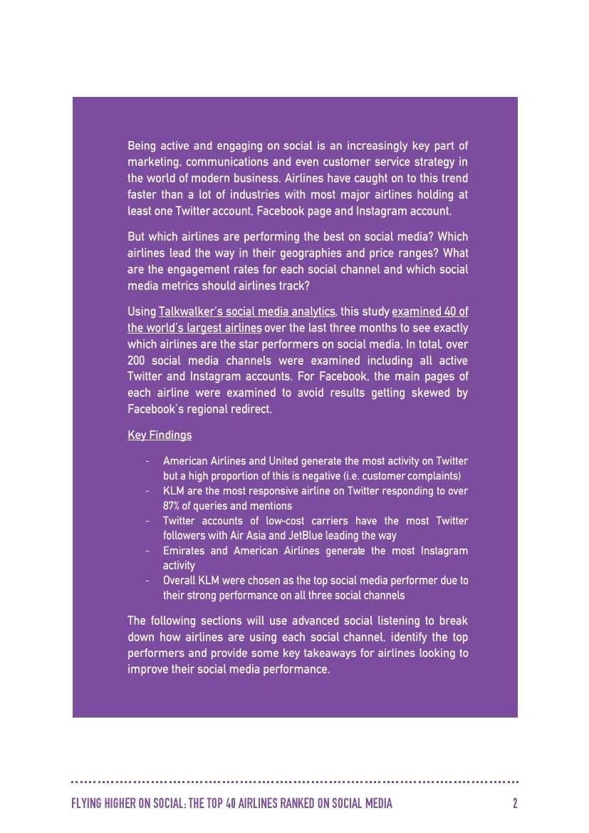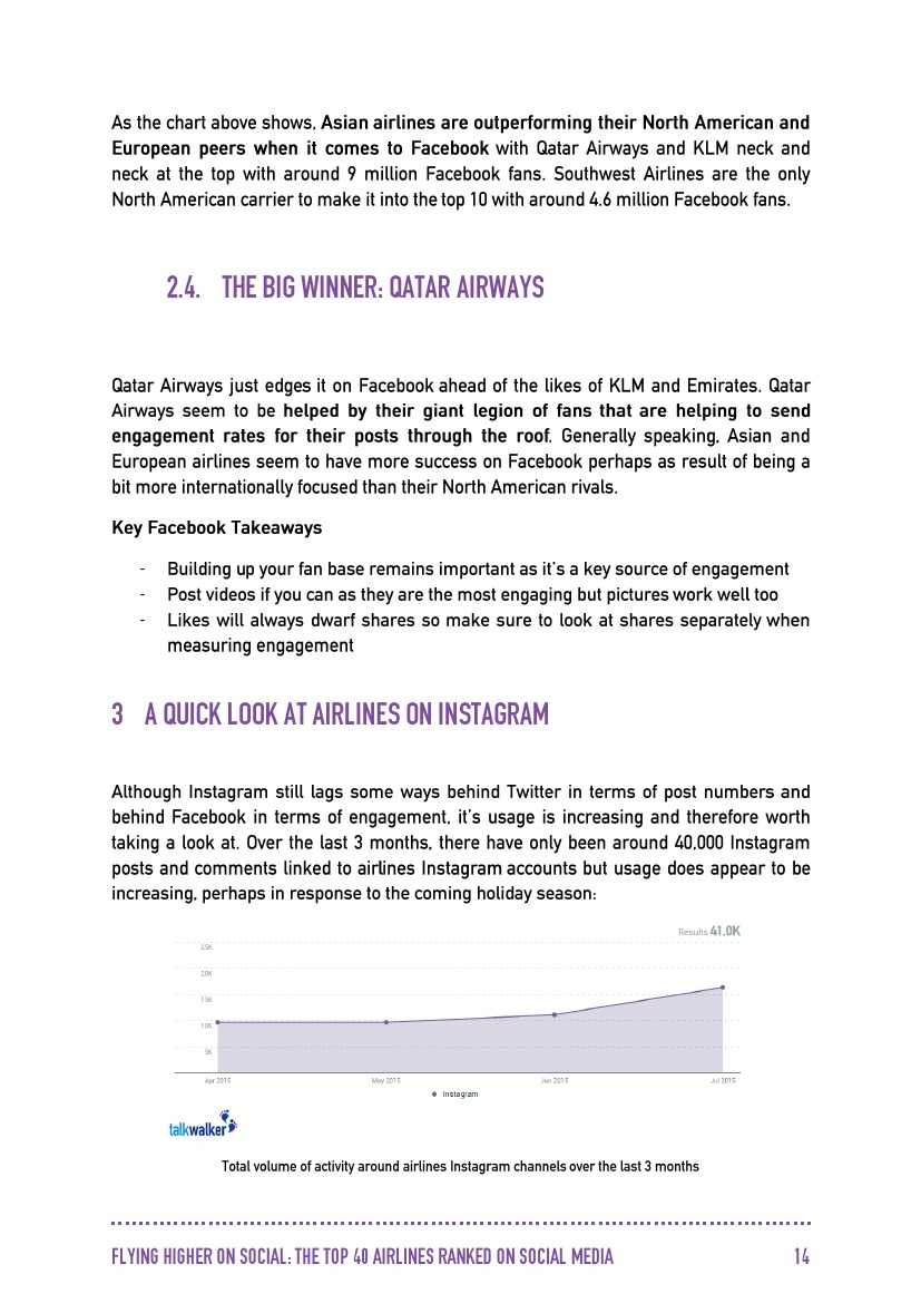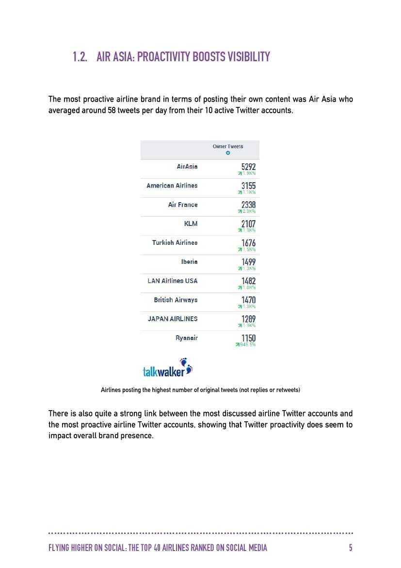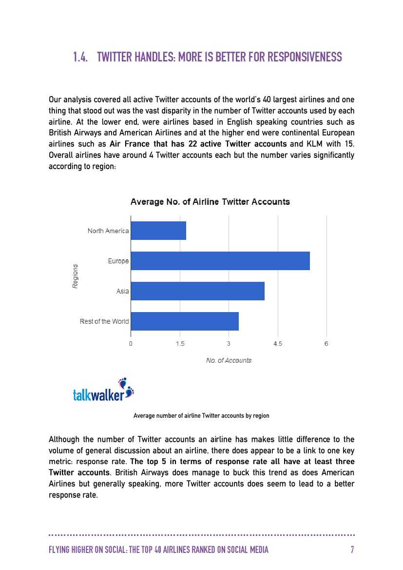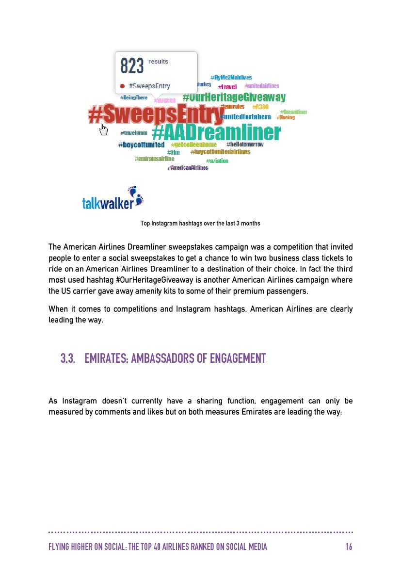 Talkwalker:2015年全球40大航空公司社交媒体分析 更多阅读:全球十大航空公司社交媒体影响力分析Crimson Hexagon:社交媒体上最遭人恨的航空公司Eezeer:2012年1月航空公司Twitter报告美兰德:2014省级卫视电视节目网络传播效果分析北京演出行业协会:2014年北京市演出市场统计与分析欧可财富:2014中国财富管理分析Salesforce:2023年数据和分析报告利用信息“面包屑”分析人类社会TalkingData崔晓波:基于移动游戏全方位数据分析挖掘市场空白上海二手车协会:2020年1-2月上海二手车市场分析BDEX:中国慈善组织分析—信息图Gartner:2020年印度IT支出总额将达到940亿美元分析和解决问题的7种武器中国汽车流通协会:2019年2月全国二手车市场分析值得关注的12大开源大数据分析应用软件