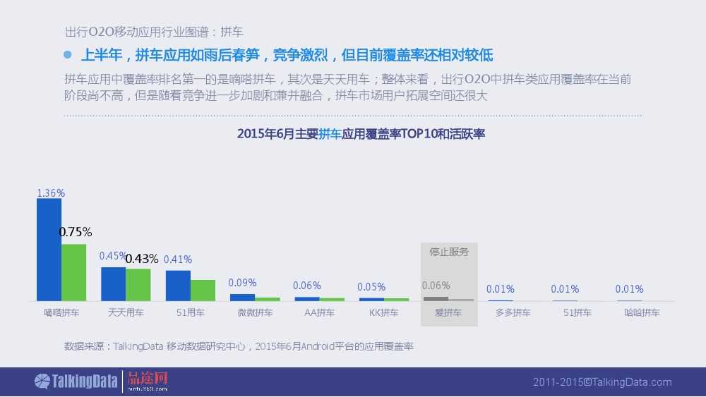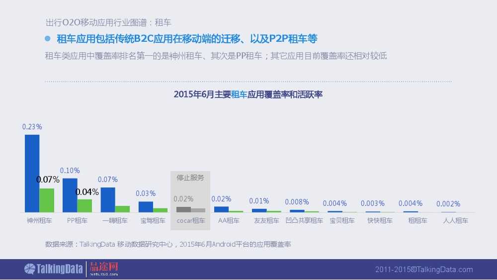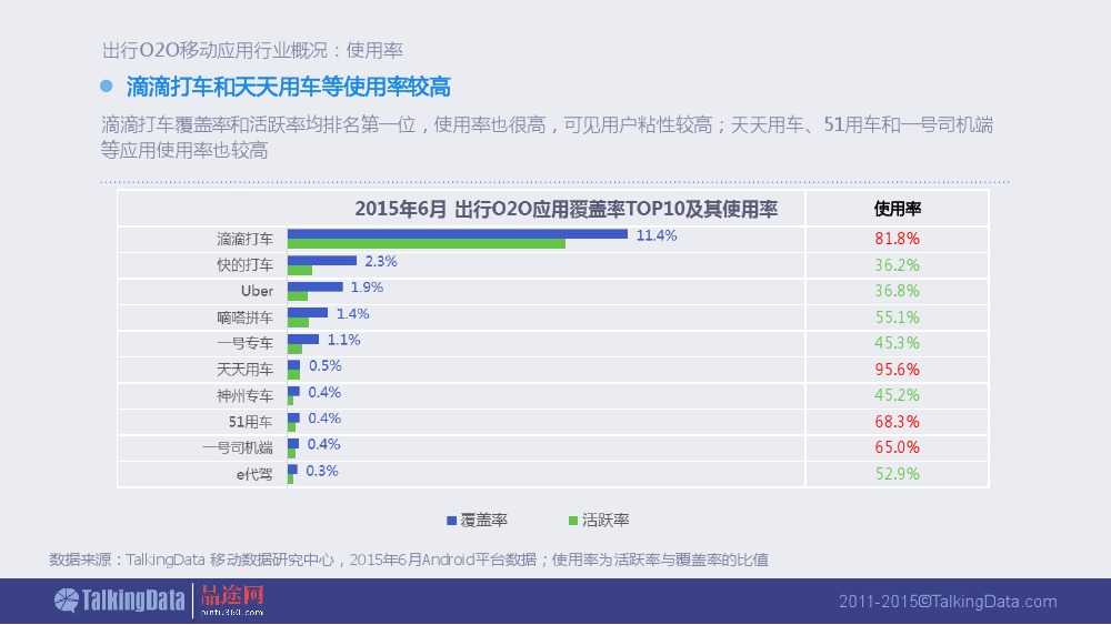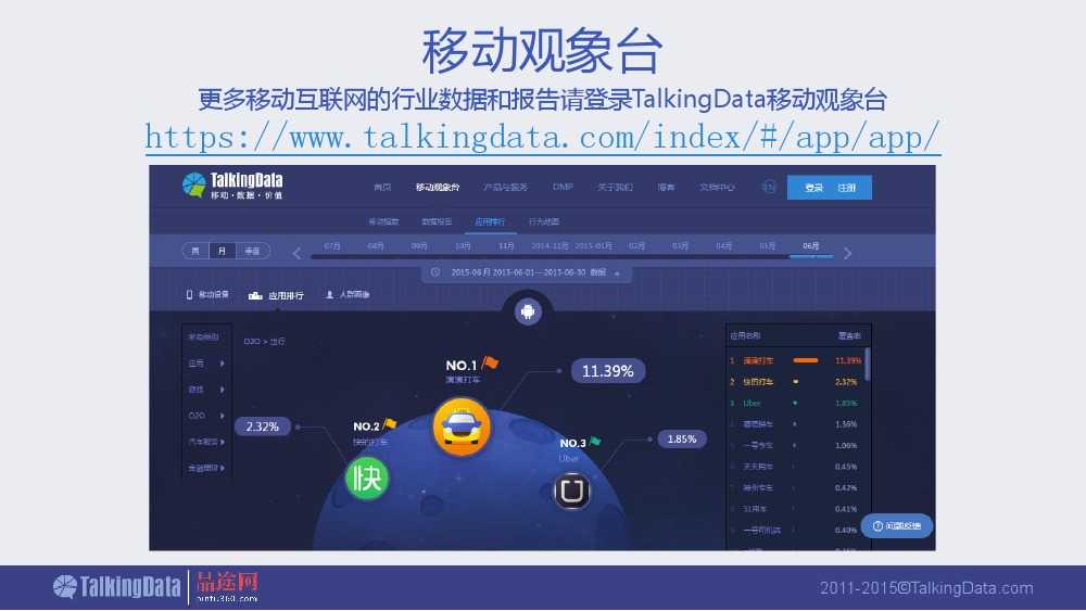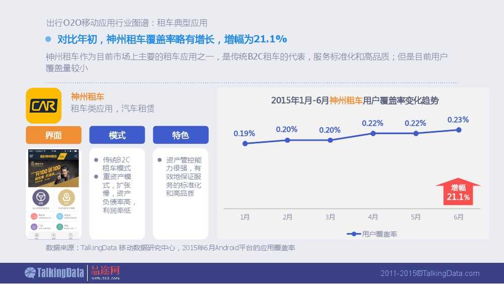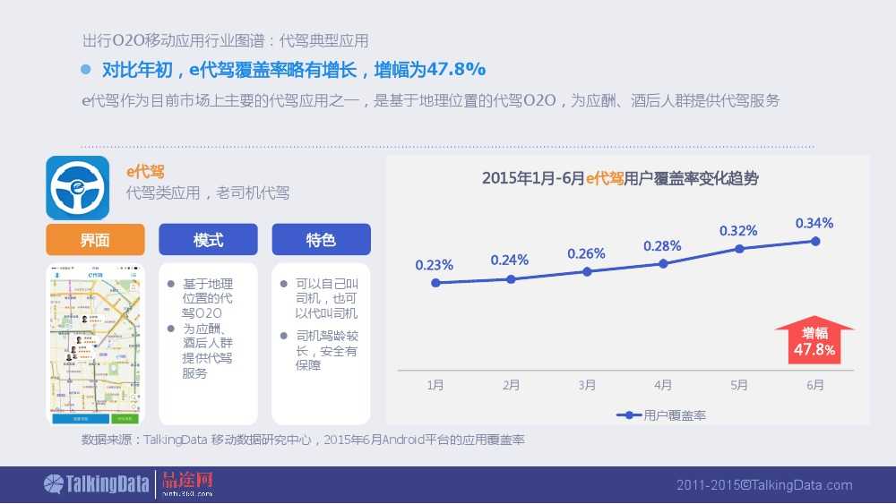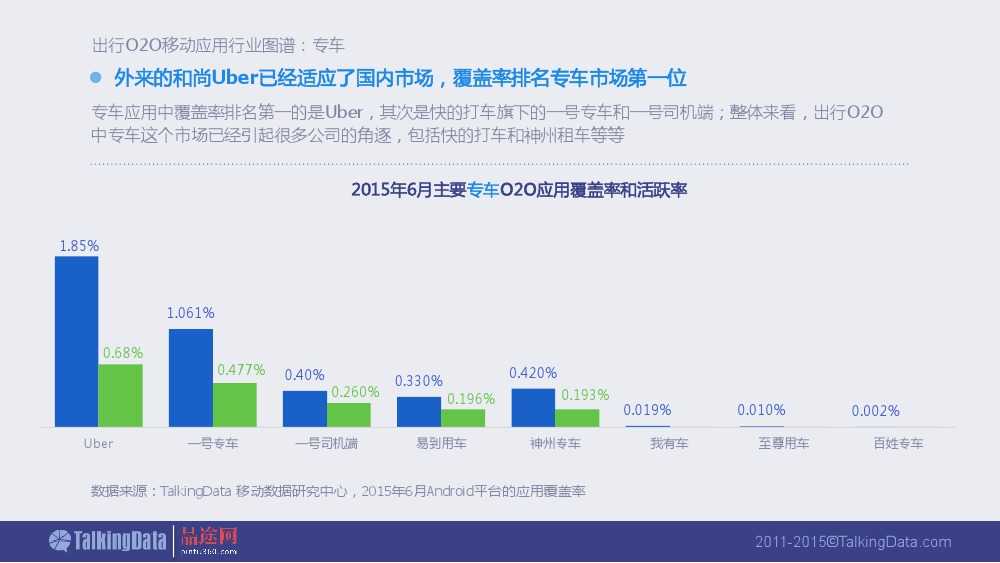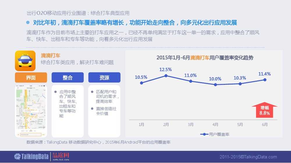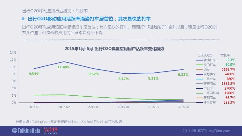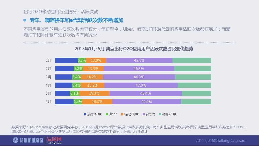 TalkingData:2015年出行O2O移动应用行业报告 更多阅读:TalkingData:2015年上门O2O移动应用行业报告TalkingData:2015年餐饮O2O移动应用行业报告Talkingdata:2015美业O2O移动应用行业报告TalkingData:2015年社区O2O移动应用行业研究2015年生活服务类移动应用白皮书TalkingData:2015年12月 O2O应用潜力榜及年终榜单盘点TalkingData:2015年奔跑吧兄弟2电视直播观看人群用户画像TalkingData:2014年移动电台应用行业报告TalkingData:2014年移动音乐应用行业报告TalkingData:2015年8月移动游戏BenchmarkTalkingData:2015年Q2 Apple Watch数据洞察报告TalkingData:2015上半年移动游戏行业报告友盟+:2016年Q1 O2O移动应用发展报告TalkingData:2014年移动购物助手应用行业报告2015年上半年京东智能硬件行业报告(PPT完整版)