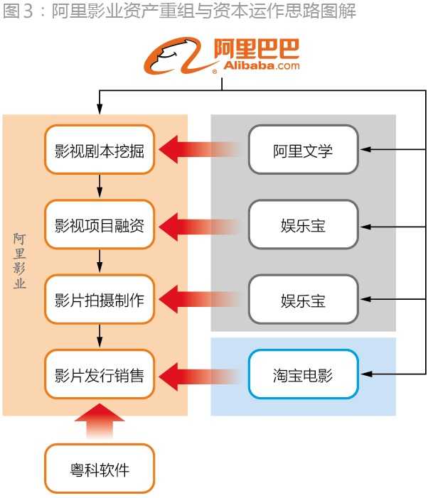 娱乐宝是阿里巴巴数字娱乐事业群联合金融机构打造的增值服务平台,其依附于支付宝移动端,通过向消费者发售产品进行融资,最终投向阿里巴巴旗下的文化产业。阿里巴巴声称,娱乐宝将成为影视娱乐行业新的风向标,从投资制作环节就对内容产生影响,实现真正的“大数据创作”。淘宝电影是由阿里巴巴旗下的淘宝软件开发的生活类手机软件,提供电影资讯,包括预告片、高清海报与剧照、剧情介绍,以及网友评论等服务。