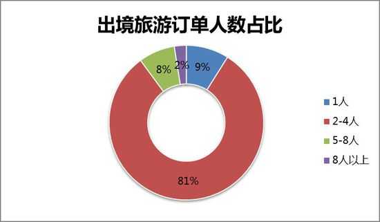 途牛旅游网监测数据显示,今年上半年选择出境游的用户中,从订单人数看, 2-4人出行的比例较多,占比高达81%,人群以家庭、情侣、朋友等为主。