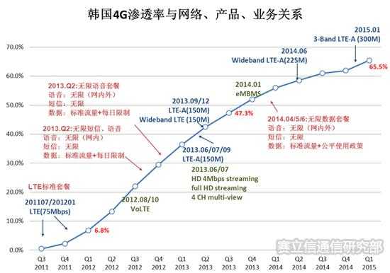 韩国4G渗透率在不同阶段的攀升,主要通过网络、产品、业务在不同阶段的演进升级来实现。