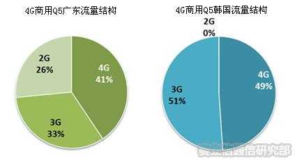 在第五个季度,韩国4G流量占总流量的49%,广东4G流量占比仅为41%;韩国2G流量占比趋乎于零,广东2G流量占比依然达到26%。