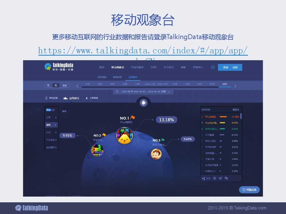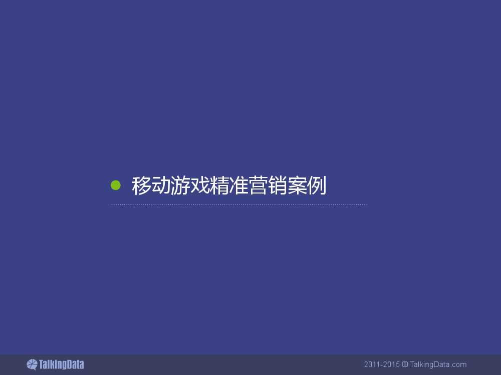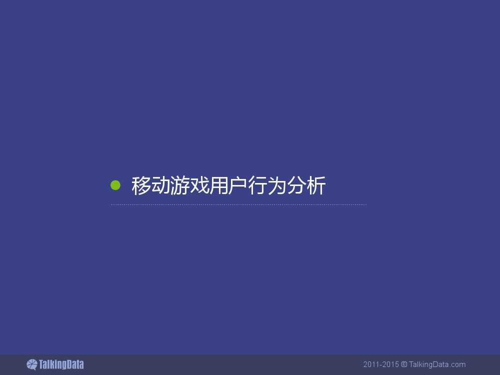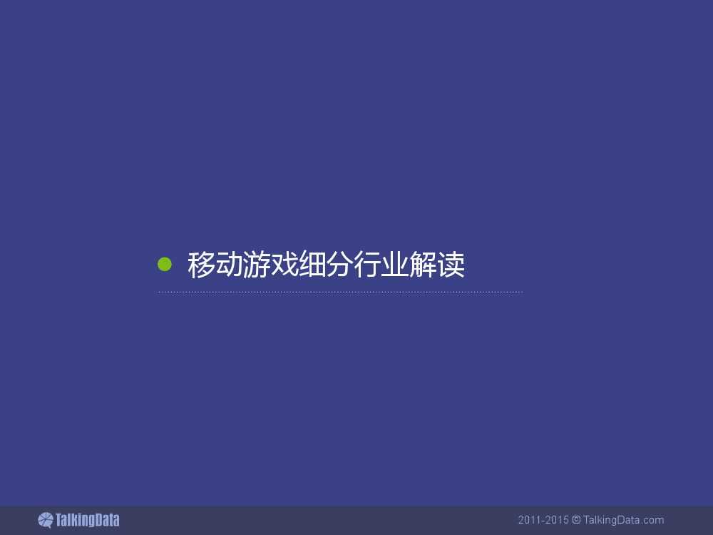 TalkingData:2015上半年移动游戏行业报告 更多阅读:TalkingData:2015年上门O2O移动应用行业报告Talkingdata:2015美业O2O移动应用行业报告TalkingData:2014年移动电台应用行业报告TalkingData:2015年出行O2O移动应用行业报告TalkingData:2014年移动音乐应用行业报告TalkingData:2015年10月移动游戏BenchmarkNewzoo:2015年中国移动游戏收入将达到65亿美元TalkingData:2015年9月移动游戏Benchmark指标数据TalkingData:2015上半年移动游戏行业报告TalkingData:2015年8月移动游戏BenchmarkTalkingData:2015年7月移动游戏Benchmark指标数据TalkingData:2015年5月移动游戏BenchmarkTalkingData:2015年4月移动游戏Benchmark指标数据TalkingData:2015年餐饮O2O移动应用行业报告TalkingData:2014年移动购物助手应用行业报告