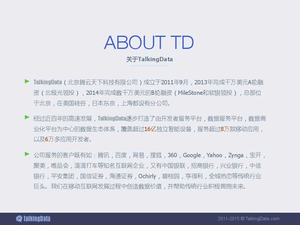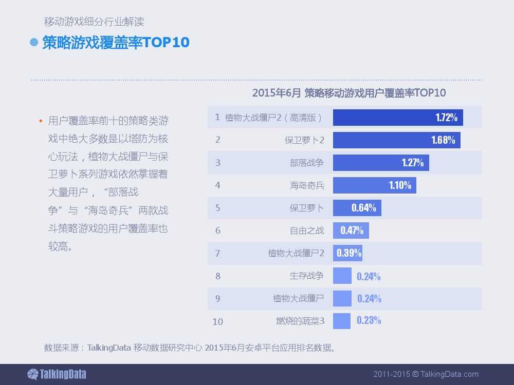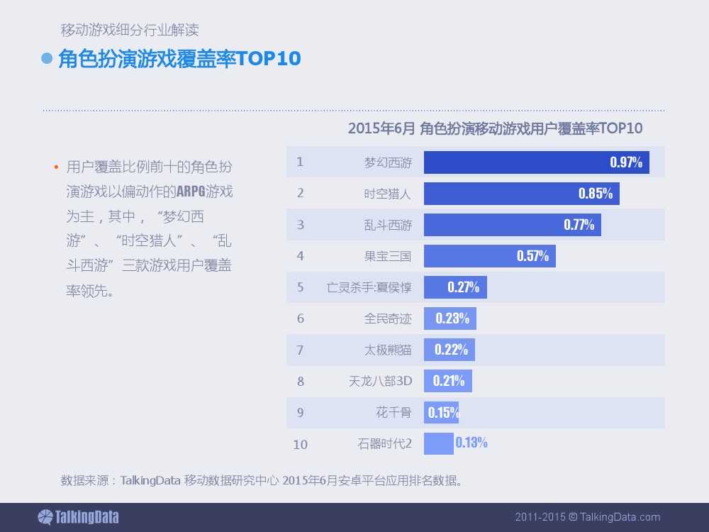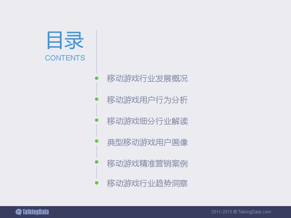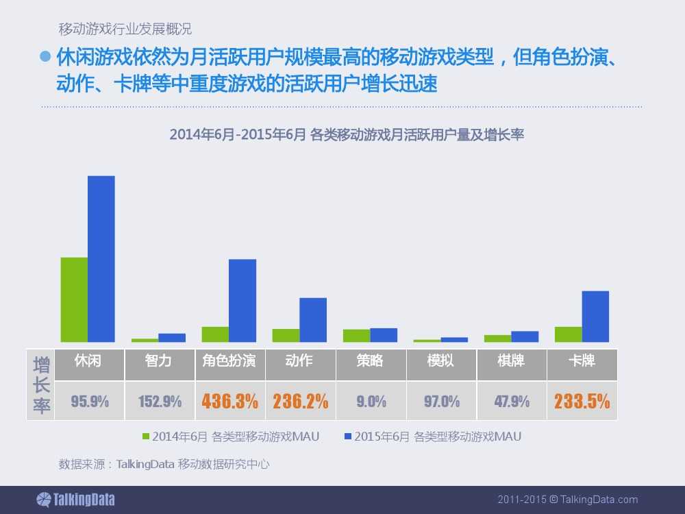 TalkingData:2015上半年移动游戏行业报告 更多阅读:TalkingData:2015年上门O2O移动应用行业报告Talkingdata:2015美业O2O移动应用行业报告TalkingData:2014年移动电台应用行业报告TalkingData:2015年出行O2O移动应用行业报告TalkingData:2014年移动音乐应用行业报告TalkingData:2015年10月移动游戏BenchmarkNewzoo:2015年中国移动游戏收入将达到65亿美元TalkingData:2015年9月移动游戏Benchmark指标数据TalkingData:2015上半年移动游戏行业报告TalkingData:2015年8月移动游戏BenchmarkTalkingData:2015年7月移动游戏Benchmark指标数据TalkingData:2015年5月移动游戏BenchmarkTalkingData:2015年4月移动游戏Benchmark指标数据TalkingData:2015年餐饮O2O移动应用行业报告TalkingData:2014年移动购物助手应用行业报告