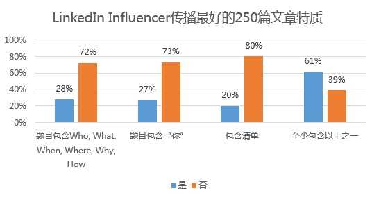 我们的研究发现,在LinkedIn Influencer发表的250篇最热文章中,28%在标题中用了6(who, what, when, where, why, how)。比方说,“如何判断你是否走在人生的正确轨道上?”或“如何一周工作80-100小时还能拥有自己的生活?”这些标题的好处是回答了一个具体的问题。