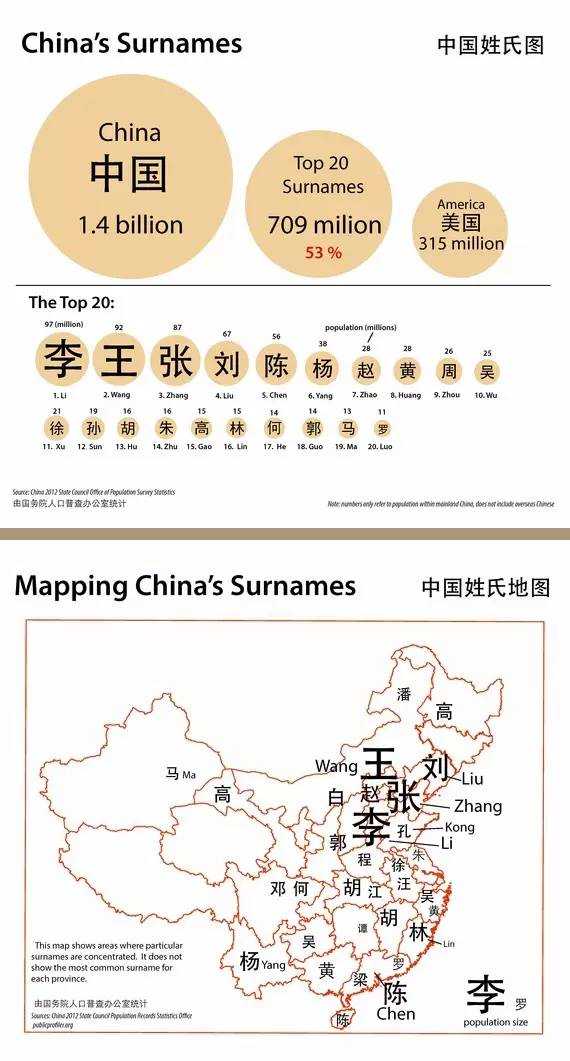 中国人的姓往往蕴藏着丰富的信息。有时,能从中猜出他的籍贯。比如“林”,见到一个姓“林”的中国人,很多人都会猜测他是福建人;“黄”,很可能是广东/广西人。