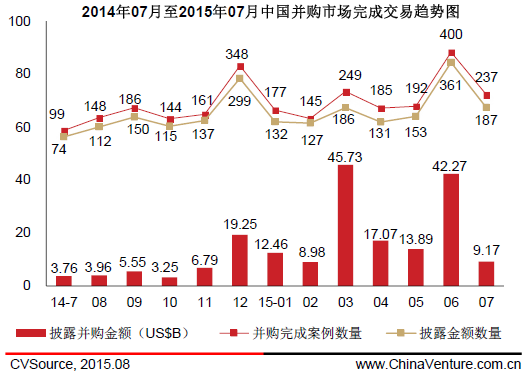 图1 2014年07月至2015年07月中国并购市场宣布交易趋势图