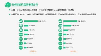 二、 安卓智能机市场:三星地位动摇,小米份额大幅增加,新晋自主品牌涌入