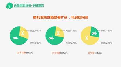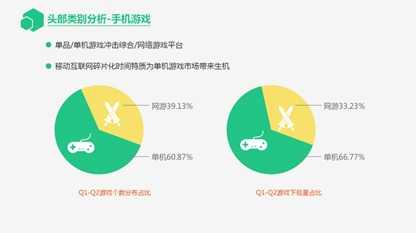 手游方面,从2015年上半年来看,移动互联网碎片化的时间特质为单机游戏市场带来了生机,使得单机游戏份额显著扩张,无论是Q1还是Q2,都有着超过70%的下载量份额,并带来了较大的利润空间。同时单品/单机游戏的快速发展也对综合/网络游戏平台产生了一定的冲击。
