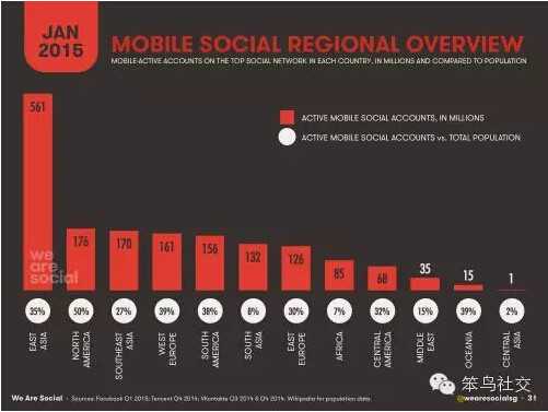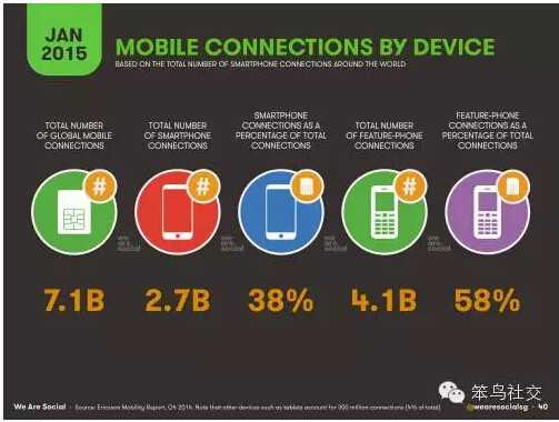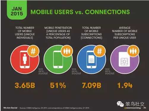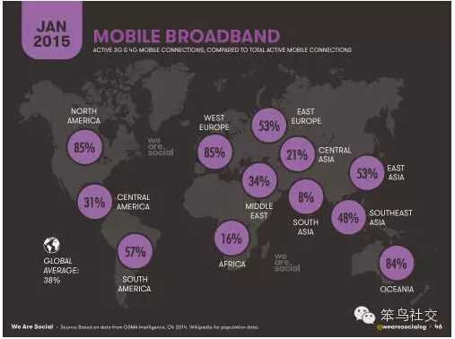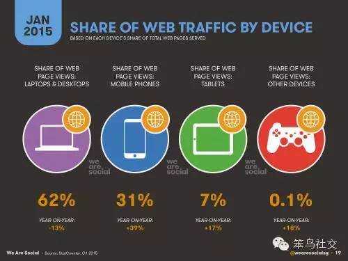 在We are social报告中,其他领域的许多增长都得益于移动设备的增加,以及它们在人们日常生活中发挥越来越重要作用。这种趋势在2015年将继续加速。