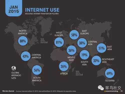 2015年1月份,全球约42%的人口已经可以联网。与去年相比,这代表着巨大进步,去年这一数字为35%。我们分析这些数字表明,大部分增长源于更精确和及时的数据报告,而非联网的人数量激增。但毫无疑问,过去12个月中有数百万人首次能够上网,尽管许多人都通过手机联网。