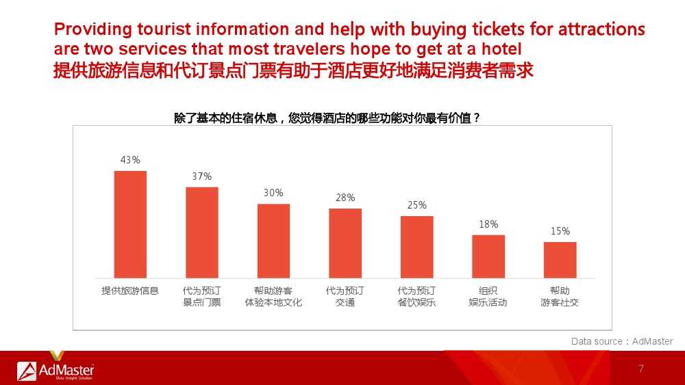 经济型酒店受欢迎的原因,在于当前多数用户对酒店的需求集中在功能性方面。同时AdMaster的消费者调研也发现,用户对酒店的需求正在逐步升级。78%的受访者赞成酒店应该体现本地文化,61%的受访者表示会为了有个性、有特色的酒店安排行程。