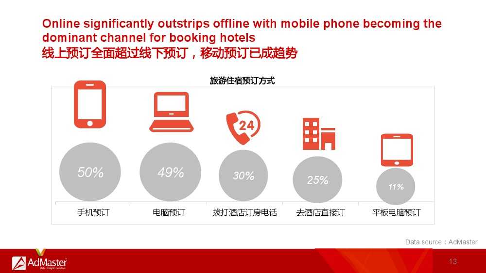 酒店预订方式向移动化迁移,线上预订超越线下预订