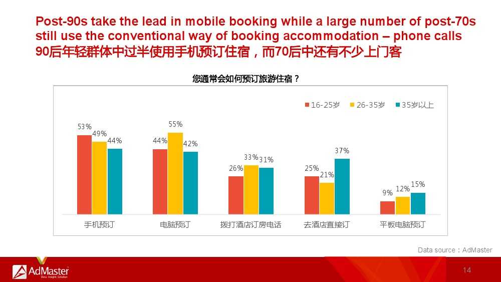 对70后来说,拨打酒店热线电话或直接走进酒店订房也许还很平常。但对于当前的80后、90后群体,线上预订酒店已全面超过传统的线下预订方式。特别是随着移动互联网和O2O的兴起,移动预订成了大多数年轻用户订酒店时的首选。对于酒店品牌来说,拥抱变化,建立自己的移动互联网营销策略是当下要务。