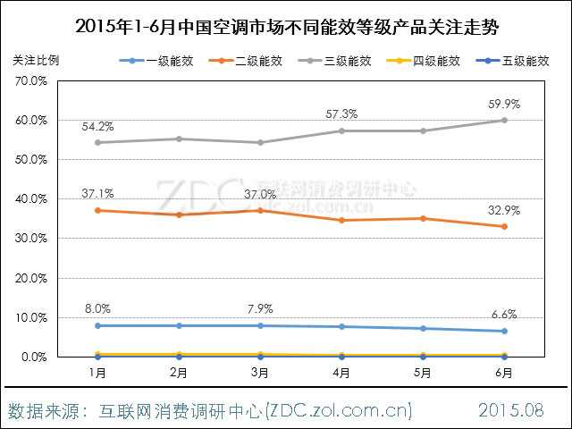 (图) 2015年1-6月中国空调市场不同能效等级产品关注走势