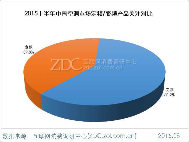 整体来看,上半年空调市场上变频空调为用户关注的主流,获得60.2%的关注比例,定频空调获得39.8%的关注比例。更加省电的变频空调占据市场主流。