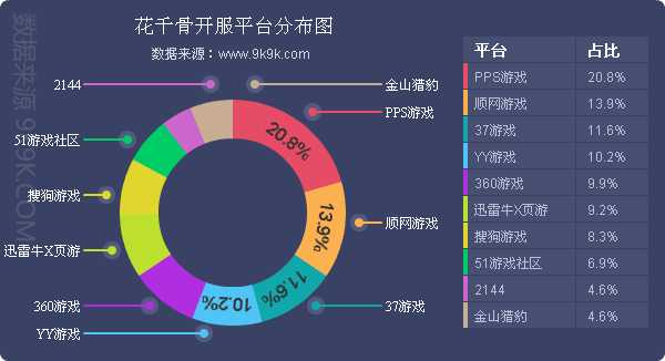 点评:《花千骨》本周开服情况稳定,PPS游戏开服占比最高,为20.8%,较上周增加3.5%。