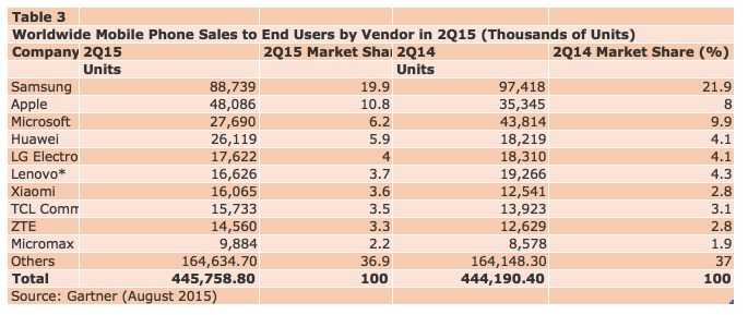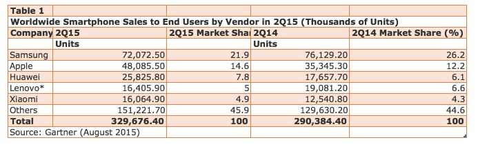 “虽然低成本3G、4G手机始终刺激着新兴地区的市场需求,但全球智能手机销量二季度还是呈现了比较复杂的发展状况”,Gartner研究主任Anshul Gupta如是认为。他指出,中国市场作为全球最大的智能手机销售国,2015年二季度足足承揽了全球近30%的手机销量,因此,中国市场的表现对全球移动手机市场的表现都起着至关重要的影响。