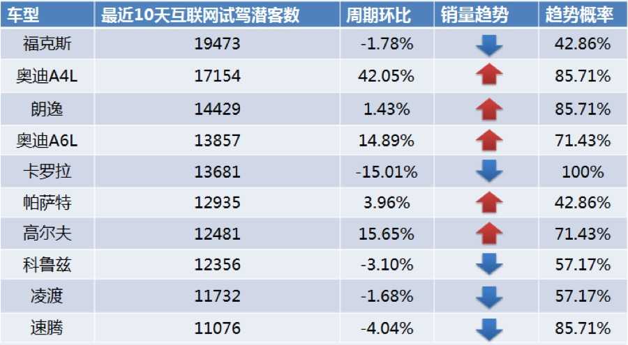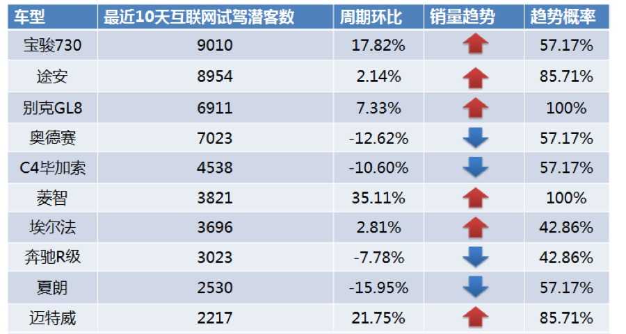 注:试驾潜客数指在互联网上点击过一款具体车型号的经销商询价页面或预约试驾页面,并只点击过该车型,同时点击的相关页面为非广告页面的用户。