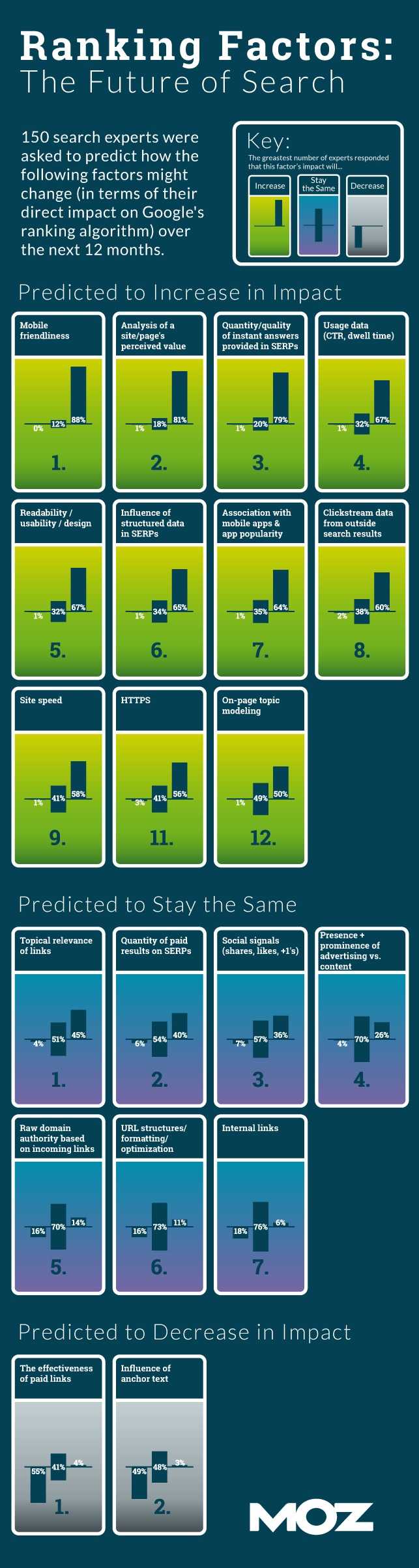 Moz年度报告调查了Google的17,600个关键词的搜索结果,并采访了150位搜索专家。
