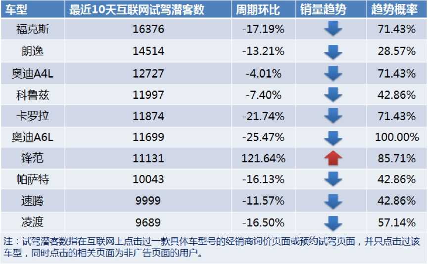 9月第二周轿车互联网用户关注量车型TOP10销量趋势预测