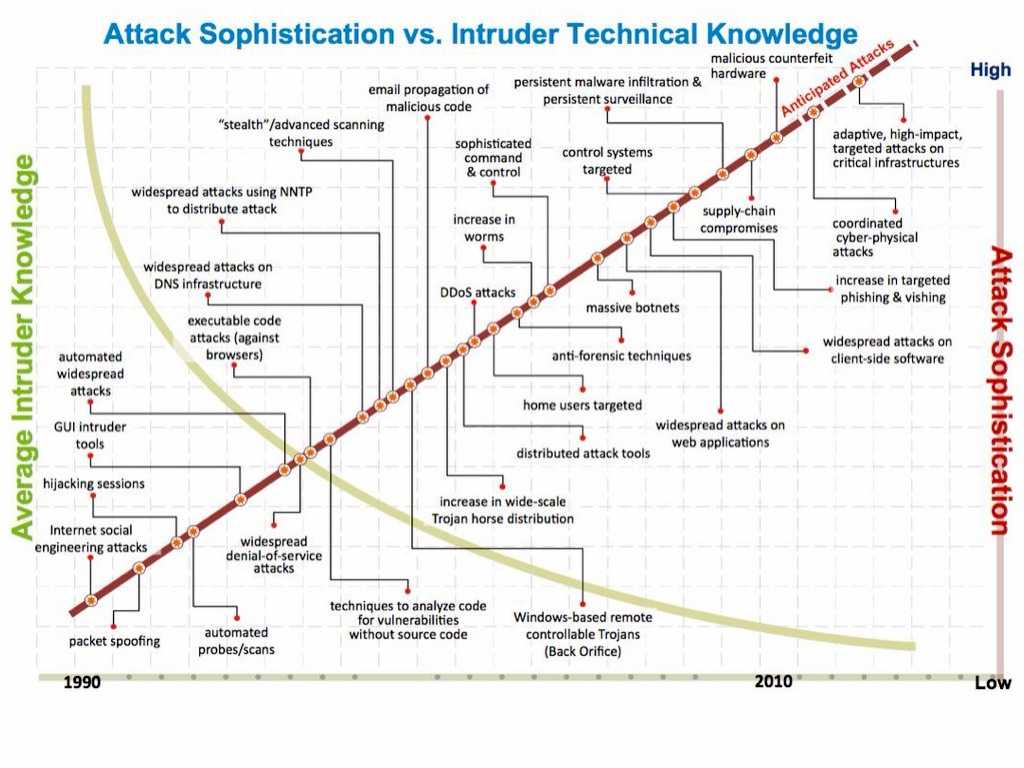 在过去二十年,攻击方法和技术得到迅速发展。图1展示了自1990年以来新的、更加复杂的威胁资产和能力。