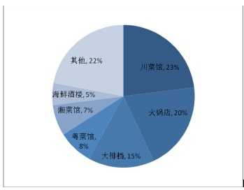 在代驾场景的需求分布中,餐馆和酒楼占比最高,产生了将近50%的代驾订单,其次是酒吧、KTV等休闲娱乐场所,另外小区、医院、4S店、写字楼等代驾需求场景日益增多,由此可以看出人们使用代驾的场景正在逐渐增加。在产生订单最多的餐馆和酒楼这一次场景中,川菜馆是产生代驾订单最多的餐馆类型,其次是火锅店20%,大排档以15%的占比位居第三。
