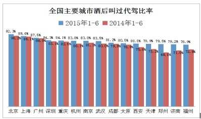 根据各主要城市代驾数据变化,e代驾全国数据中心分析数据显示,在2015年1至6月期间,全国主要城市酒驾安全意识相比2014年同期均有所提升。值得一提的是,天津、郑州、济南三个城市的市民拒绝酒驾意识提升列前三位。