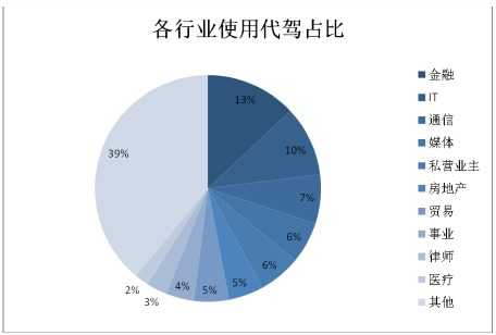 按职业分类,金融行业最喜欢叫代驾,以13%的占比领先于其他行业。其次才是IT行业和通信行业,分别以10%和7%的占比位居二、三名。