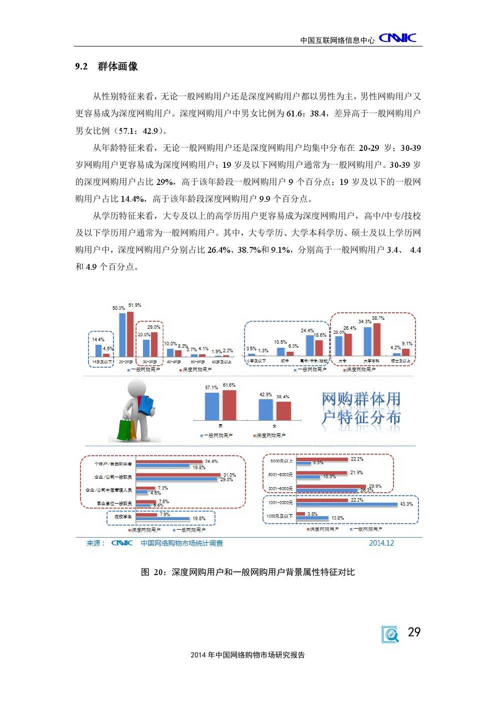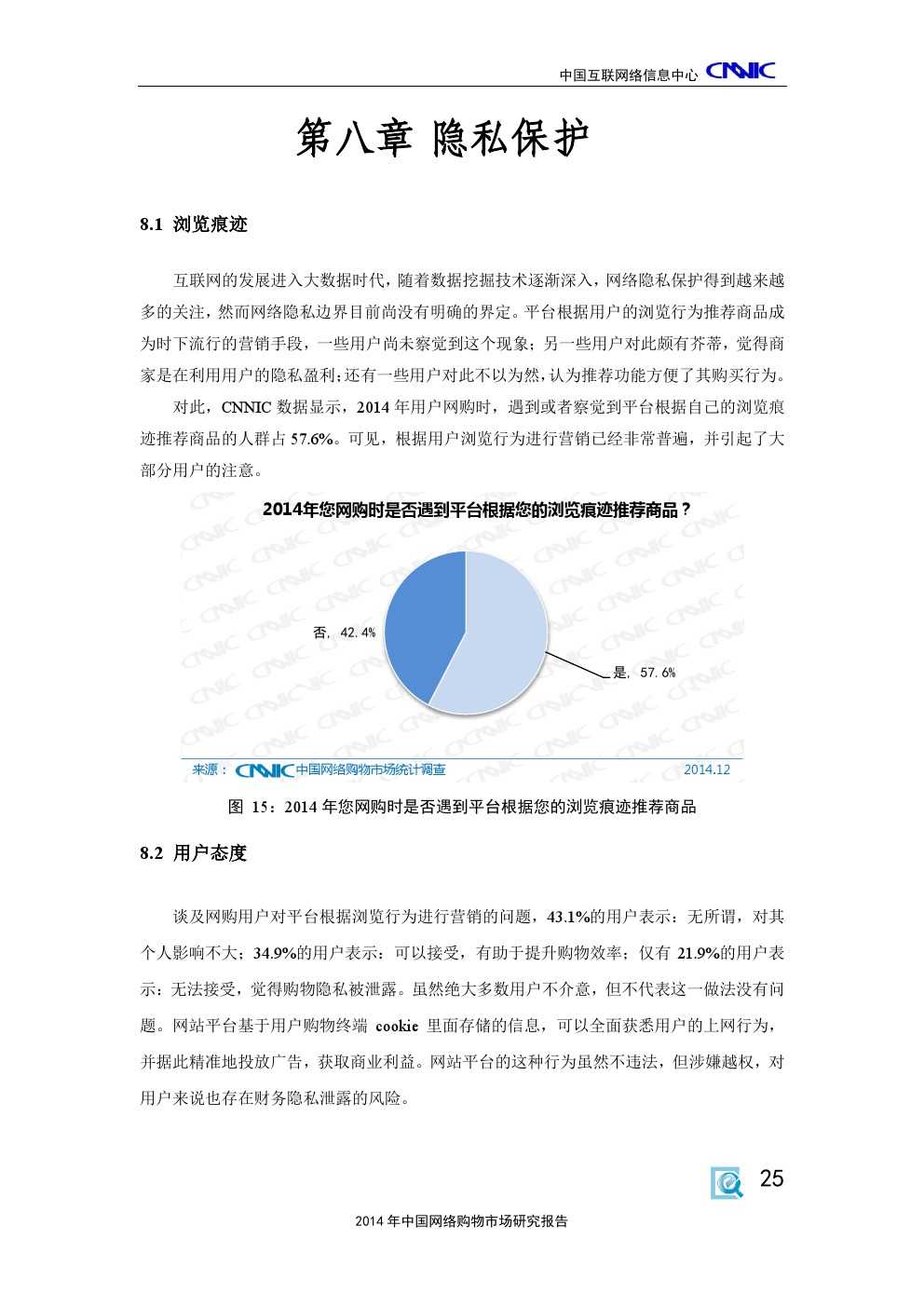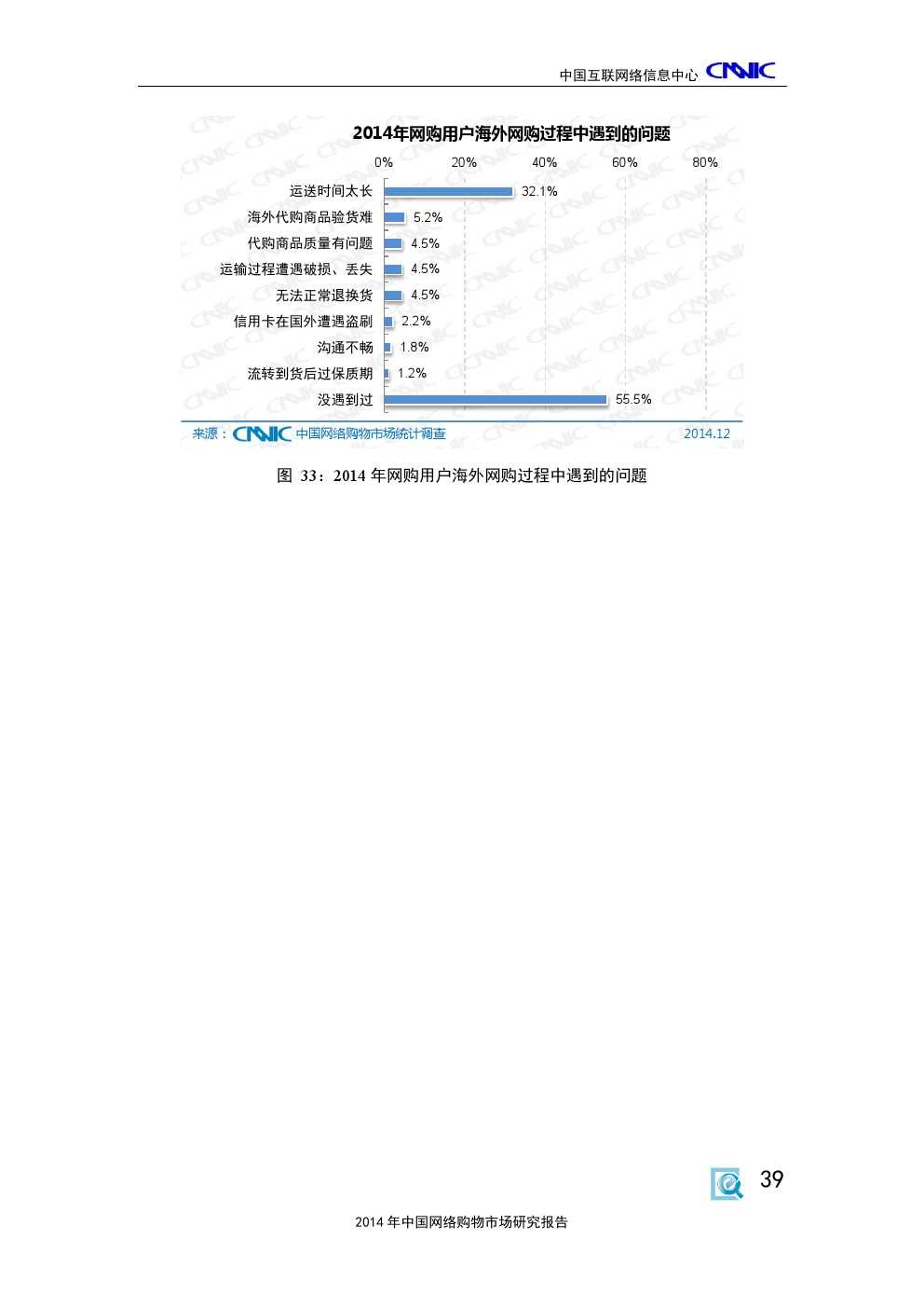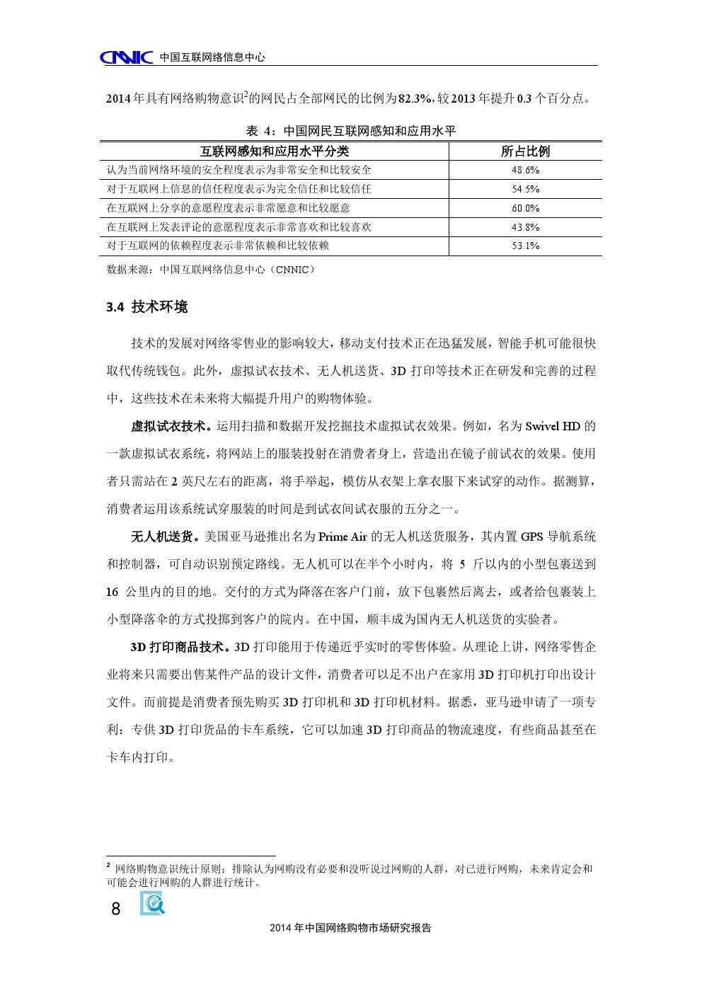 中国的社交电商拥有良好的基因和土壤,网购用户与社会化媒体/社交网站和社交化即时通信用户重合度较高。其中,网购用户与微信用户的重合度最高,网购用户中的微信用户占比为70.6%。在网购用户与社会化媒体/社交网站的重合用户中,33.8%的用户最终成为社交化网购用户。与此同时,社交化网购能够缩短用户的决策时间;促销力度较大的社交化网购产品可以在瞬间产生病毒式的营销效果,市场发展潜力较大。此外,海外购物在中国市场迅速崛起。2014年跨境B2C业务在天猫、京东、苏宁等各大网络零售平台上线。虽然2014年有过网上参加海外购物经历的人群在网购用户中仅占4.8%,但是随着国内各大电商平台上线跨境电商频道,这一群体比例会明显增加。